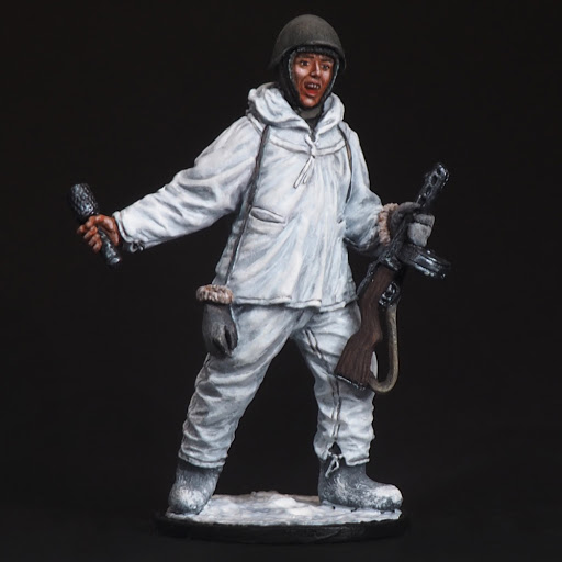 Автоматчик пехоты Красной армии в зимнем камуфляже, СССР 1941-1945 года