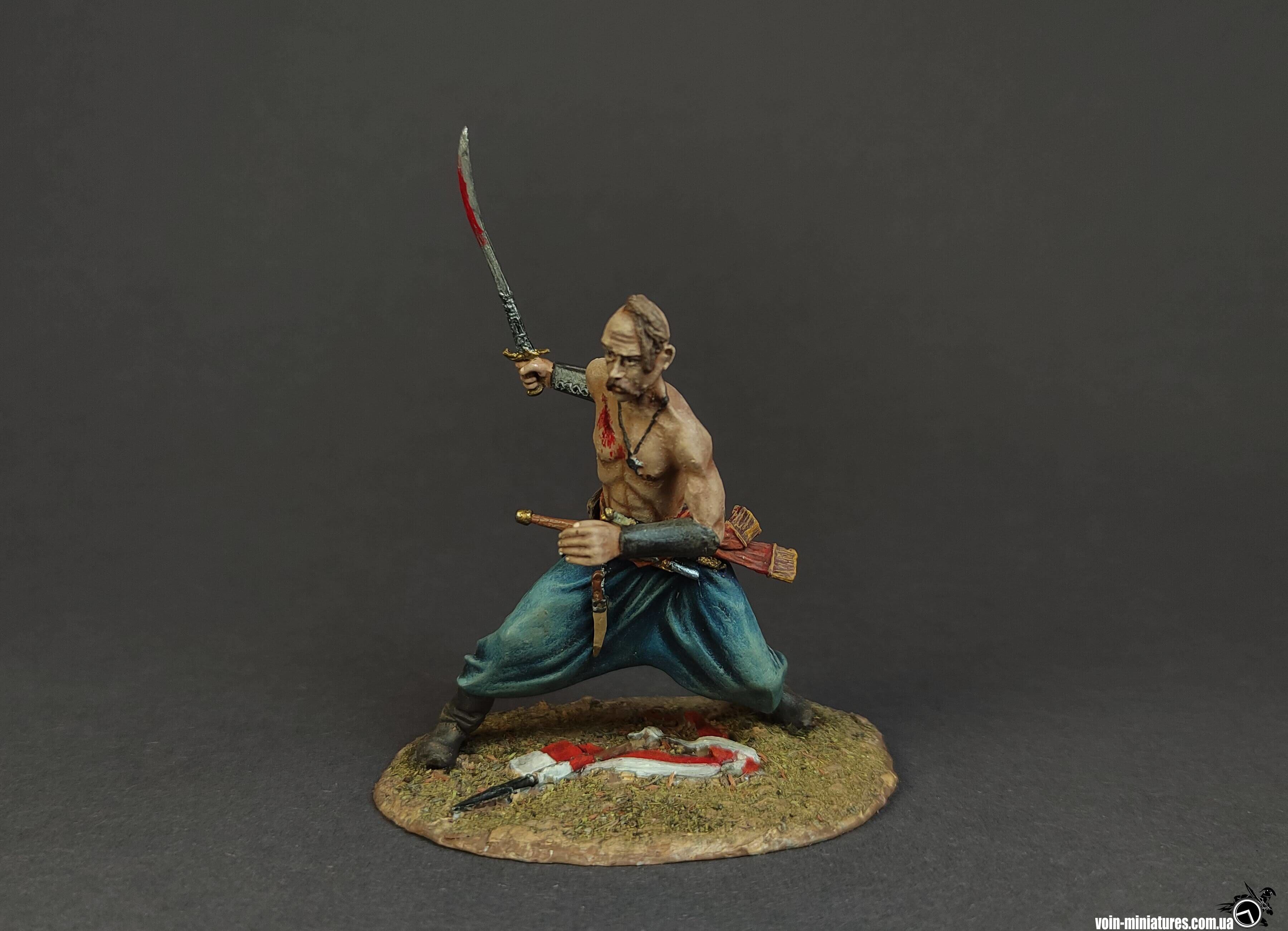 «Запорожский казак, XVII век в росписи» оловянная военно-историческая миниатюра в художественной росписи